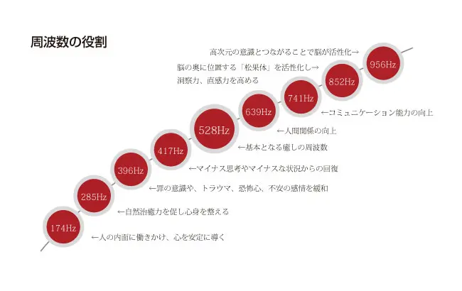昨今、話題となるソルフェジオ周波数を導入することで、さらに効果が発揮できるようになりました。